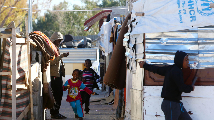 Children play in an alley at a refugee camp near the Libyan capital Tripoli that now hosts internally displaced people from the town of Tawargha, south of Misrata.