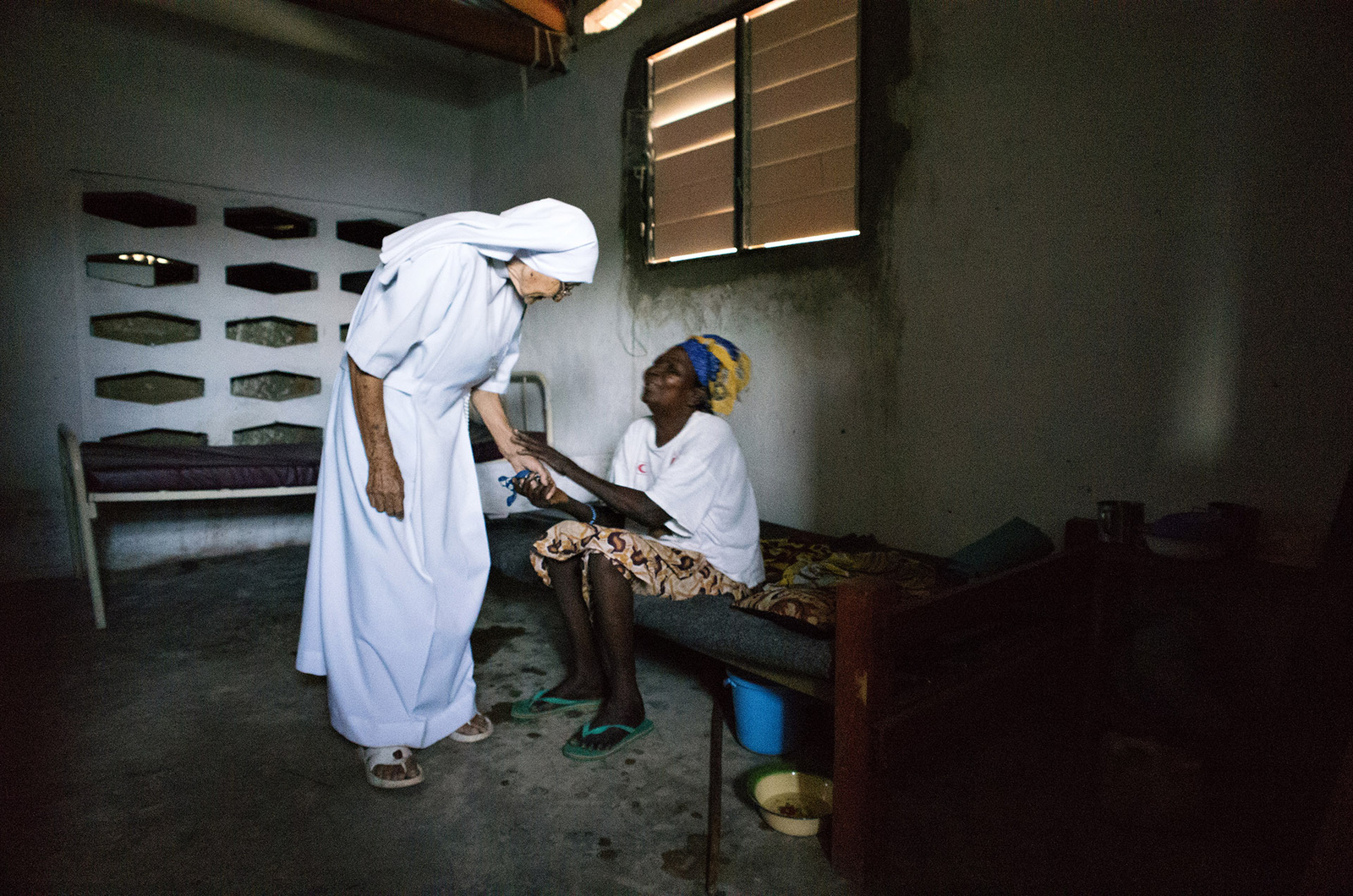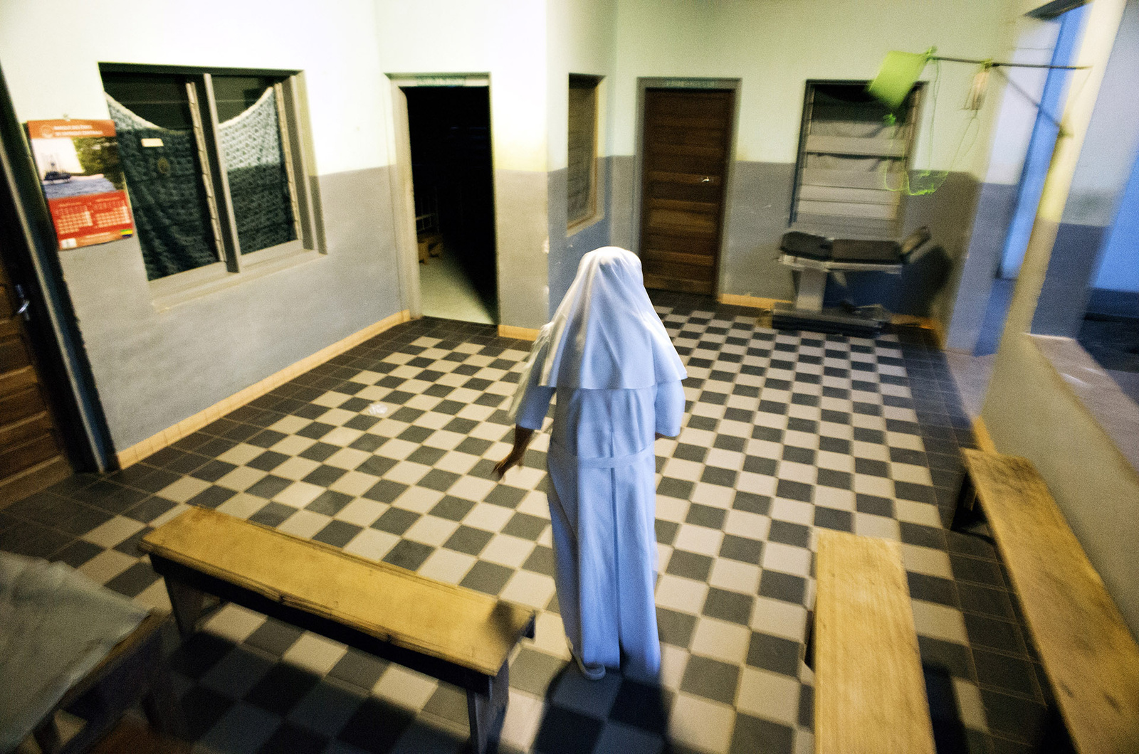 Sister Maria Concetta walks out of the labour room with a newborn baby in her arms and rushes through the corridors in search of a bed. The child is one of over 20,000 she has helped to deliver since she started working at the Zongo hospital near the Oubangui River, which flows between the Democratic Republic of the Congo (DRC) and the Central African Republic (CAR).