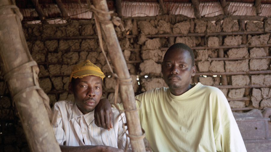 Valentin (right in yellow shirt), a 45-year-old Congolese father of eight, has been a refugee three times. He found shelter in Central African Republic. Today, it's his turn to host refugees. Valentin is seen here with his old friend and former host, Amodola, now a refugee from CAR.