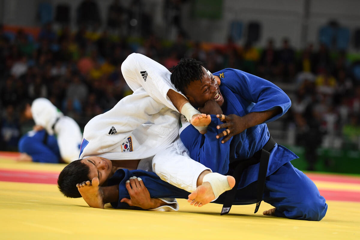 Popole Misenga celebrates the first-ever win of a refugee athlete in the Olympic Games.