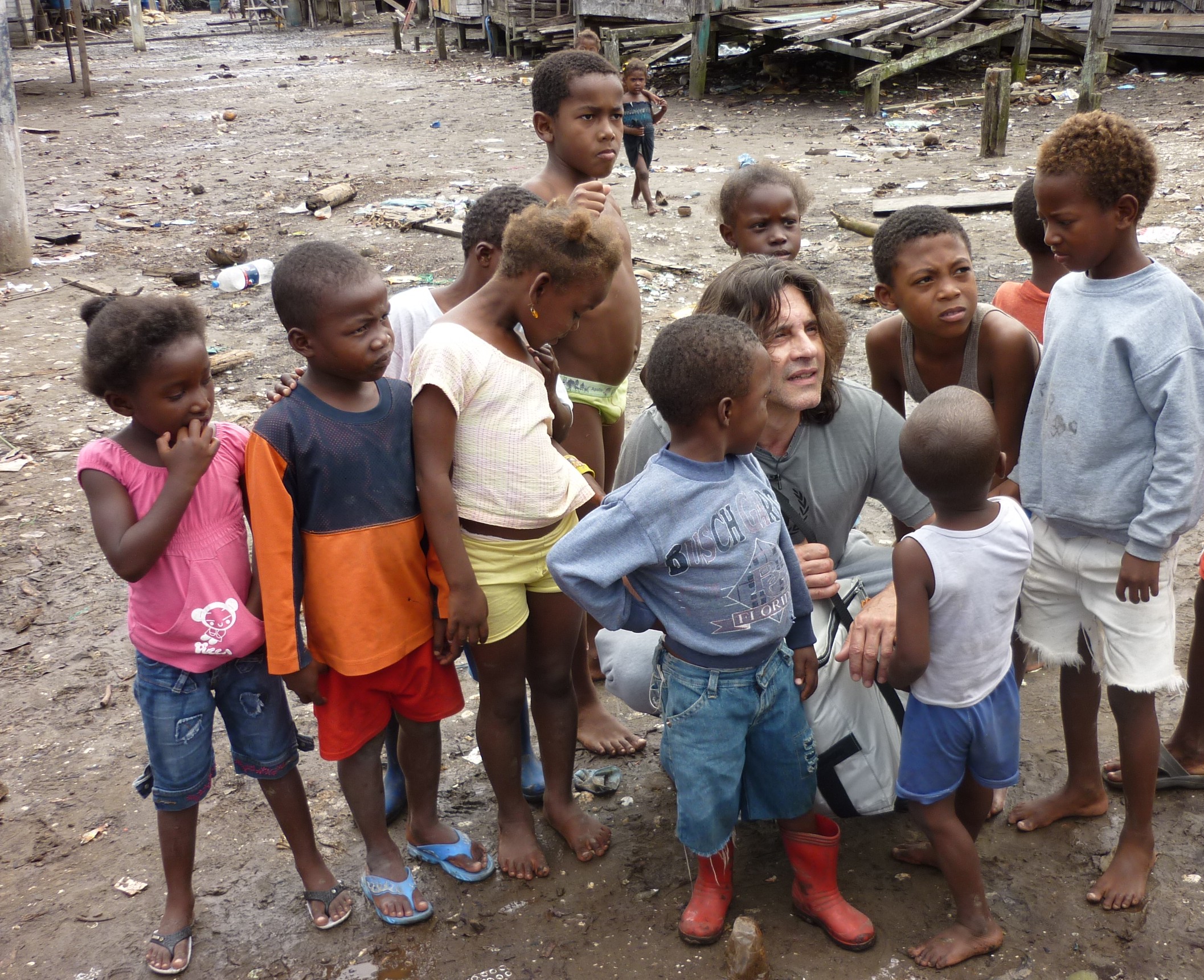 UNHCR Goodwill Ambassador Osvaldo Laport surrounded by children in Tambillo, Ecuador.