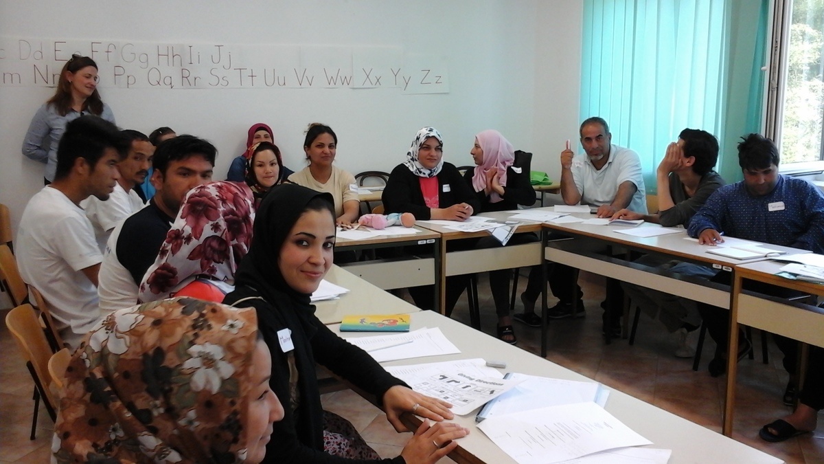 Refugees at Logatec Asylum Home Branch attend an English language class.