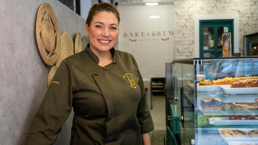 Gabriela Dávila, una empresaria venezolana que llegó a Ecuador hace cinco años, dirige un negocio de café y panadería en Quito que da empleo a personas refugiadas, migrantes y locales.