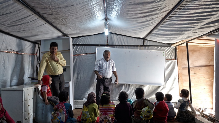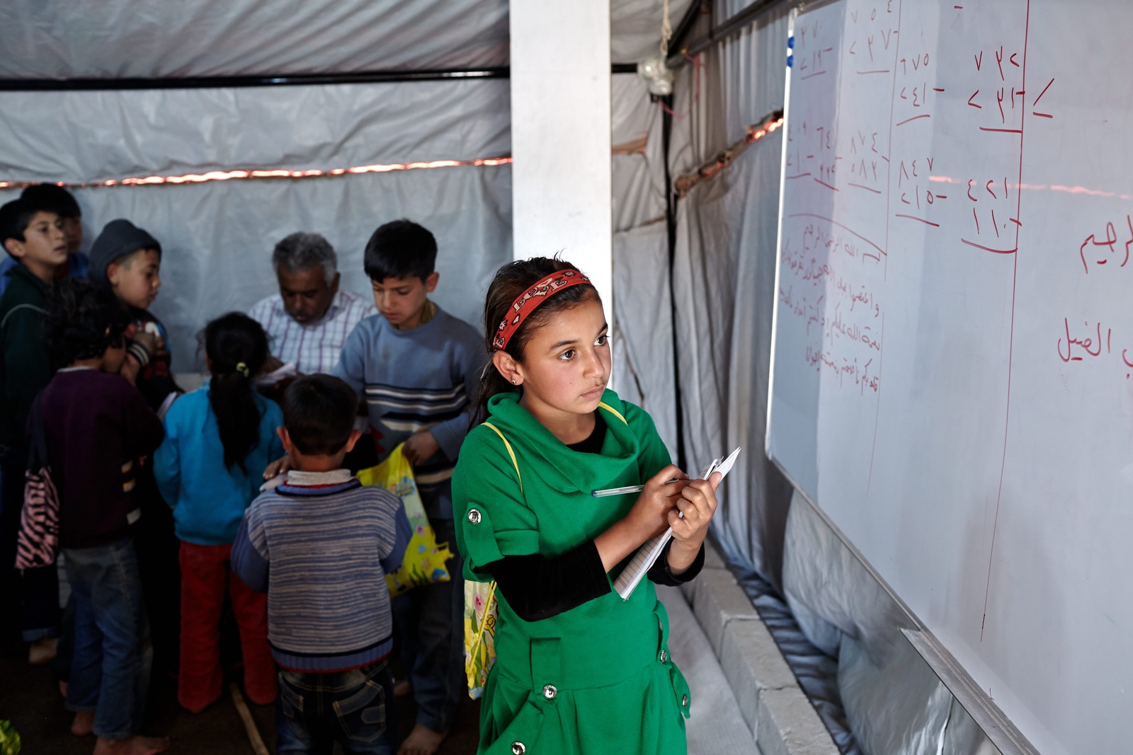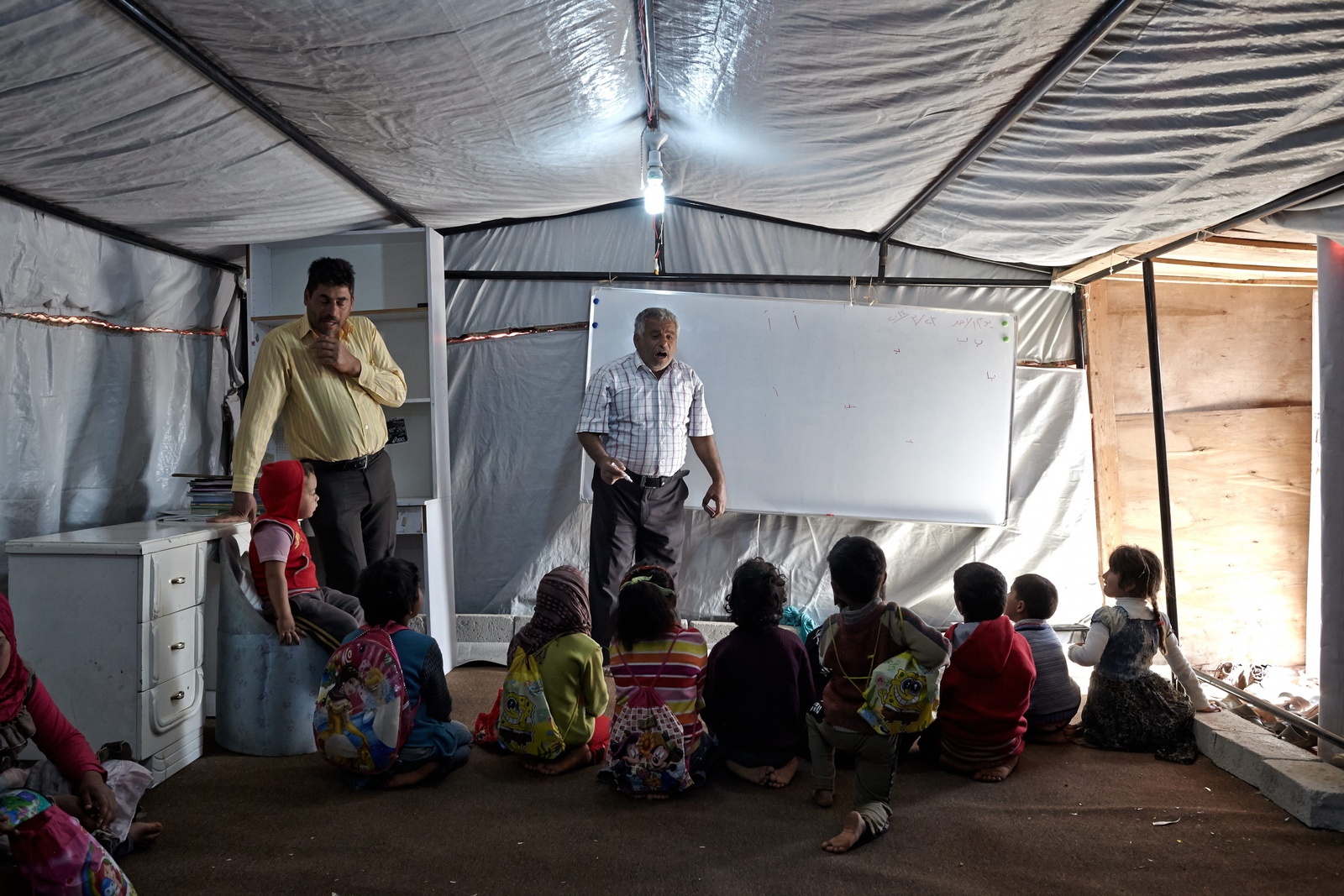 The children of Kherbet Al-Souk may be among the lucky ones. Jamal and Akram run the camp school with the help of private donations, cash assistance from UNHCR, and household goods from local charities, including a chest of drawers. And they are now using a bigger tent to deal with the extra students.