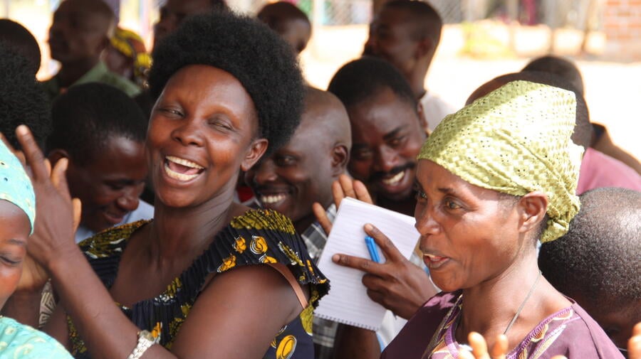 Burundian women at Katumba settlement cheer after hearing that they will become Tanzanian citizens.