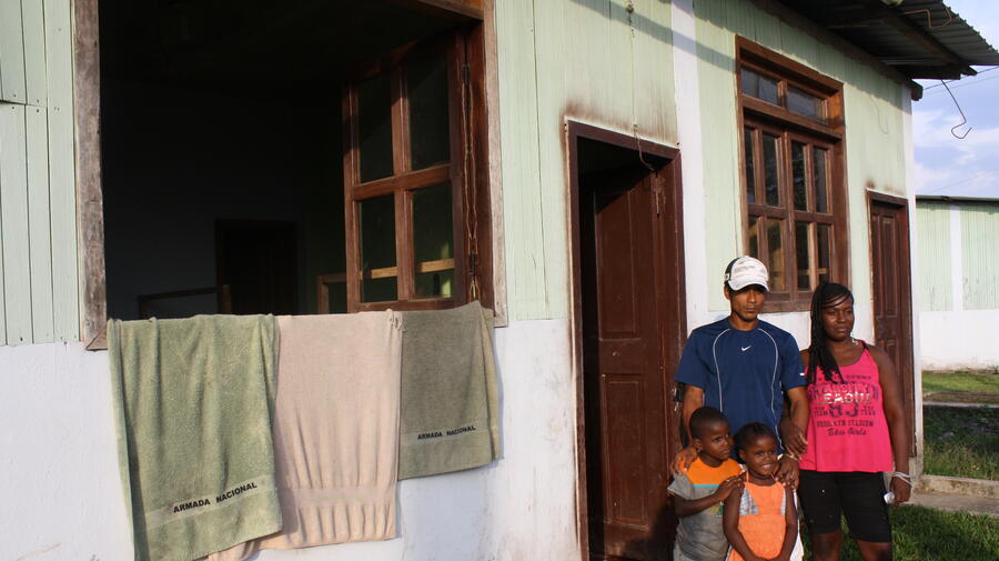 Senor Padilla with his wife and children at a UNHCR sponsored shelter home in San Lorenzo in north-western Ecuador.