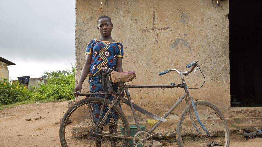 Angele, aged 13, wants to be a teacher. She lives in Saria village in central Côte d'Ivoire. Originally from Burkina Faso, her parents were never registered at birth and were hence at risk of statelessness. They managed to get late birth certificates and now have consular cards from Burkina Faso.