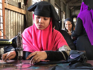 Malian refugee artisans learn to design and make quality products at a workshop in Ougadougou, Burkina Faso.