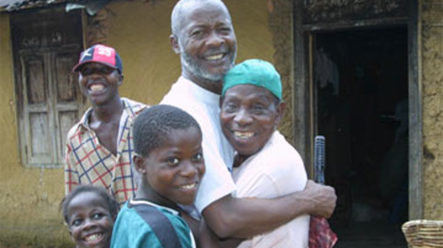 A happy reunion for Liberian returnee Umaru and his relatives in Sinje town, Grand Cape Mount county.