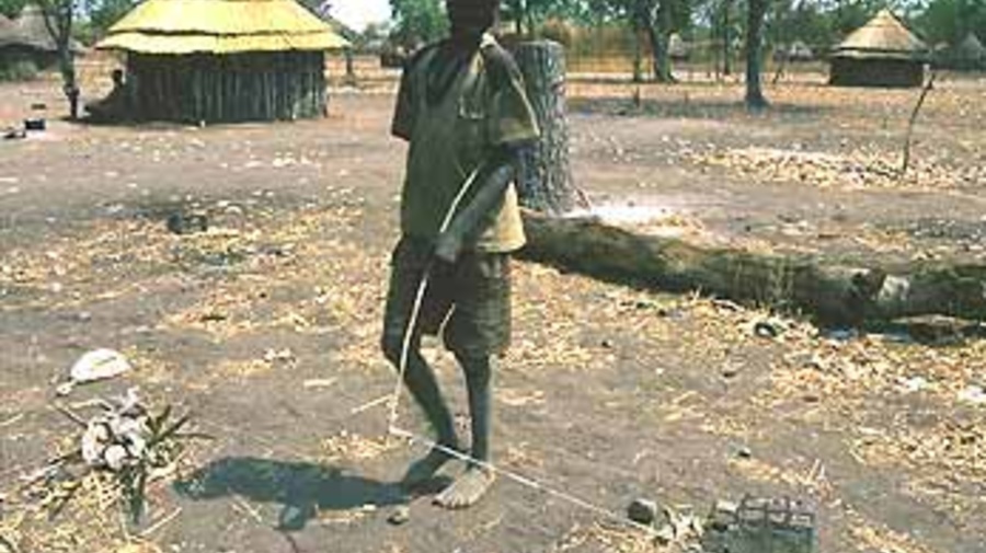 A Sudanese refugee boy in Ethiopia's Fugnido camp steals a quiet moment to play.
