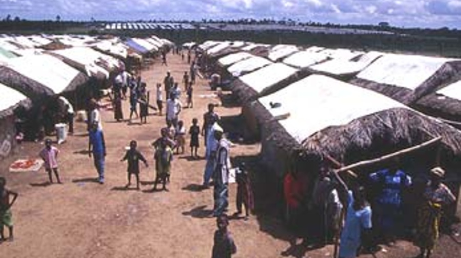 Sierra Leonean refugees in VOA camp before it was hit by recent fighting. UNHCR has since lost contact with the camp.