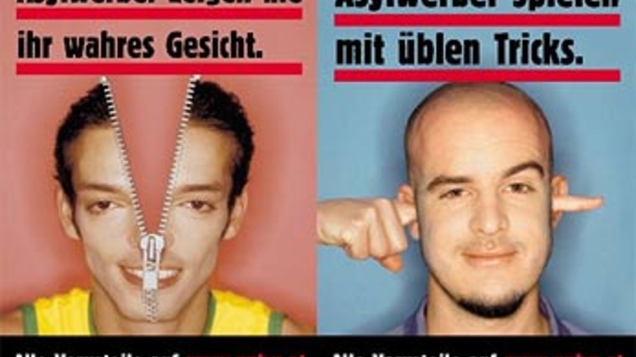"Asylum seekers never ever show their real face," says one. Another reads, "Asylum seekers only play cheap tricks." At the bottom of both posters, it says: "All prejudices at www.unhcr.at", which leads to a special page on the UNHCR Austria website that uses facts to dispel a total of 12 often-repeated but wrong myths on asylum seekers.