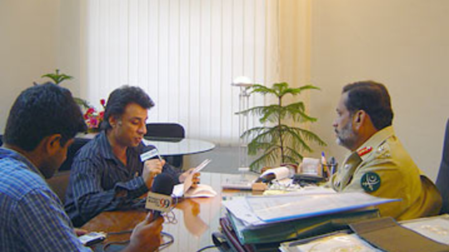 Reporters interview Lt. Gen. Nadeem Ahmed, deputy chief of Pakistan's Earthquake Reconstruction and Rehabilitation Authority for the first programme of "Hemat Javan Hai."