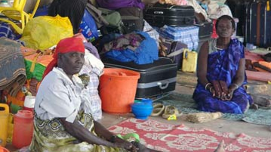 Sudanese refugees wait at UNHCR's departure centre in Kakuma before going home.