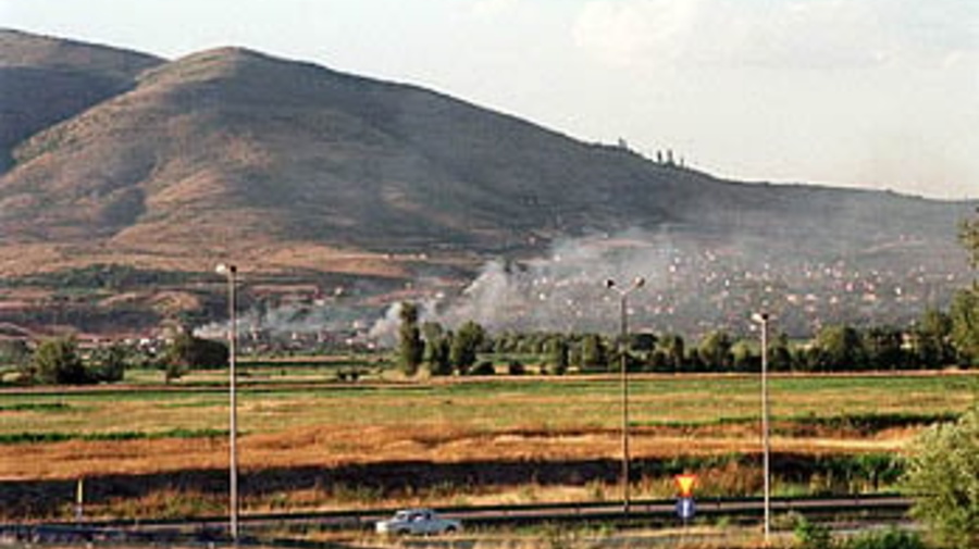 Smoke rises from Aracinovo during fighting between FYR of Macedonia forces and the NLA in late June. UNHCR/H.Caux