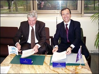 Lubbers also signed another agreement, in the form of an exchange of letters, with EC Vice-President Franco Frattini, who is Commissioner for Justice, Freedom and Security - formerly known as Justice and Home Affairs. This agreement will facilitate greater cooperation on asylum and refugee protection issues, and builds on a previous arrangement geared to the first phase of EU harmonization of asylum which was completed in May last year.