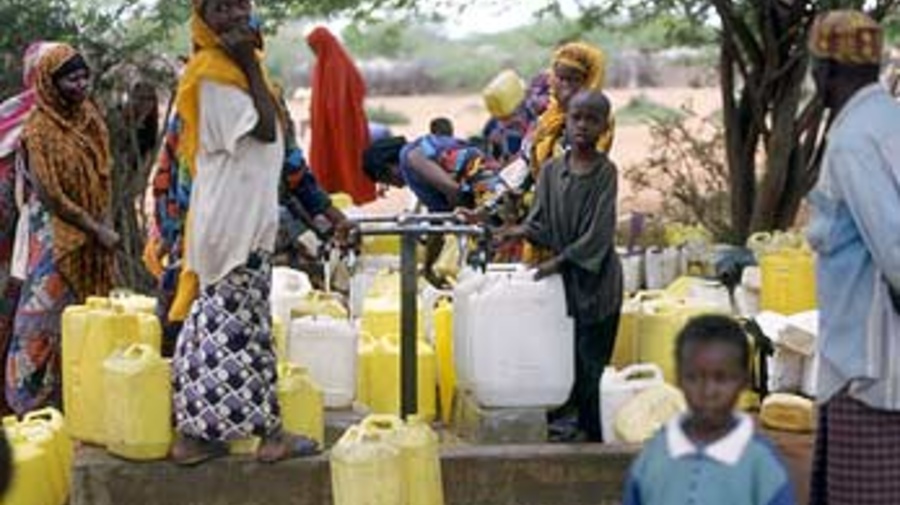Somali refugees at a water point in Haradera camp, in Kenya.