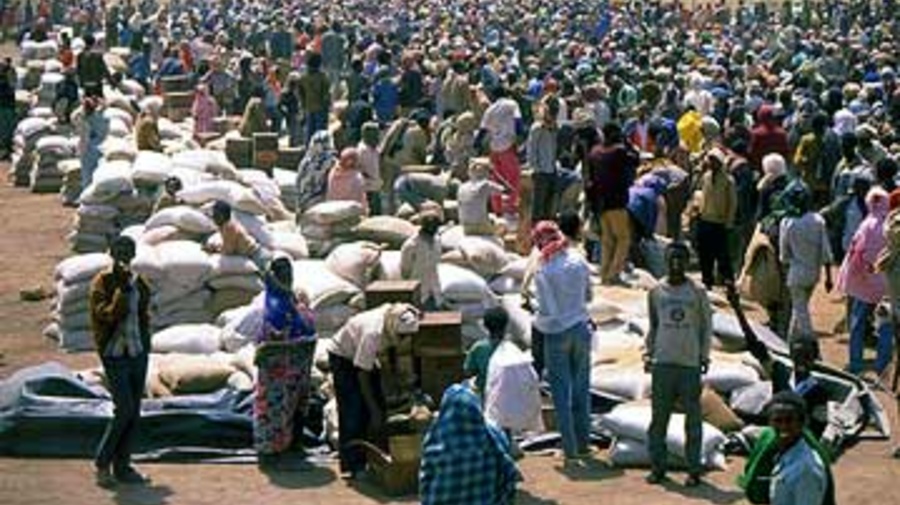 Food distribution in Ethiopia's Hartisheik camp, which hosted more than 250,000 Somali refugees in the late 1980s.