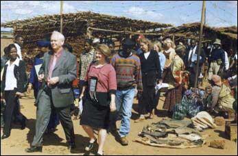 Government officials and diplomatic representatives touring Dzaleka camp.