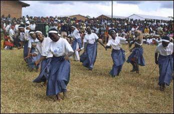Malawians performing traditional dances in a gesture of harmonious co-existence with refugees.