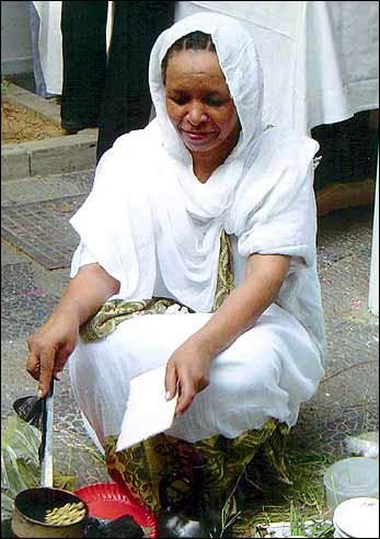 Making coffee the Ethiopian way at the World Refugee Day festival at the American University in Cairo.