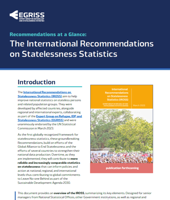 - International Recommendations on Statelessness Statistics (IROSS).